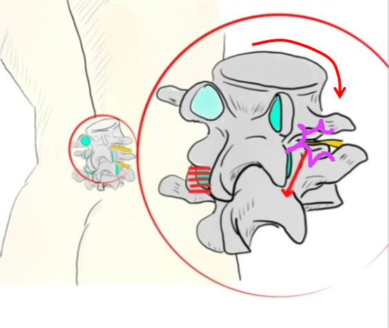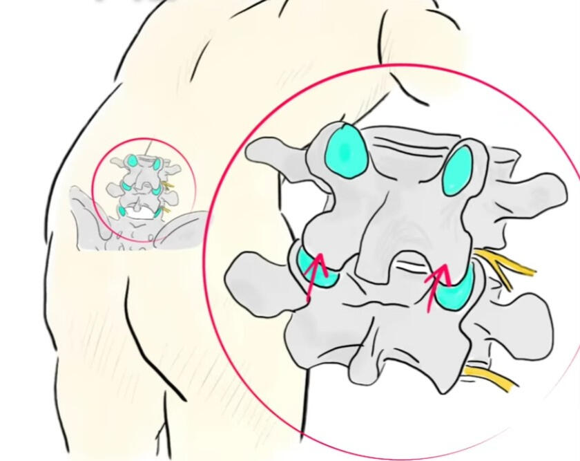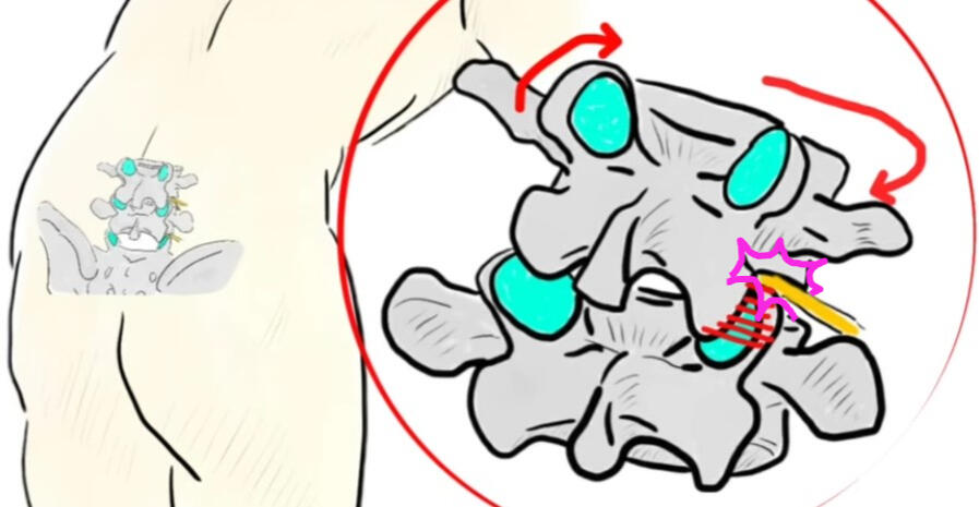 척추에서 신경 눌림의 가장 근본적인 원인은 척추 분절이 한쪽으로 틀어지면서 발생됩니다. 이것은 척추 분절의 위치를 결정하는 후관절 문제로 인합니다. 한쪽 후관절 문제만 있는 경우 척추가 틀어지면서 한쪽의 추간판 등의 척추 조직이 눌리며 양쪽 후관절 문제가 발생되는 경우 위 아래 척추가 좁아집니다. 이렇게 척추 분절이 틀어진 상태가 오래되면 척추관 협착증, 추간판 및 주변 인대의 다양한 병증으로 발전됩니다.