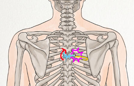 흉추 1번, 2번에 붙은 갈비뼈의 기능 장애치료한다고 이 부분의 신경에 주사를 놓는 것은 당장 저림이 완화될 수 있지만 근본적인 치료가 될 수 없습니다.치료는 위의 원인들 중 환자의 원인이 무엇인지 찾고 해결하는 것입니다.예를 들어 1번 갈비뼈의 하강이 안되는 기능장애라면 하강이 되도록 치료하여 비정작적으로 가해지는 압력을 해소하는 것입니다.