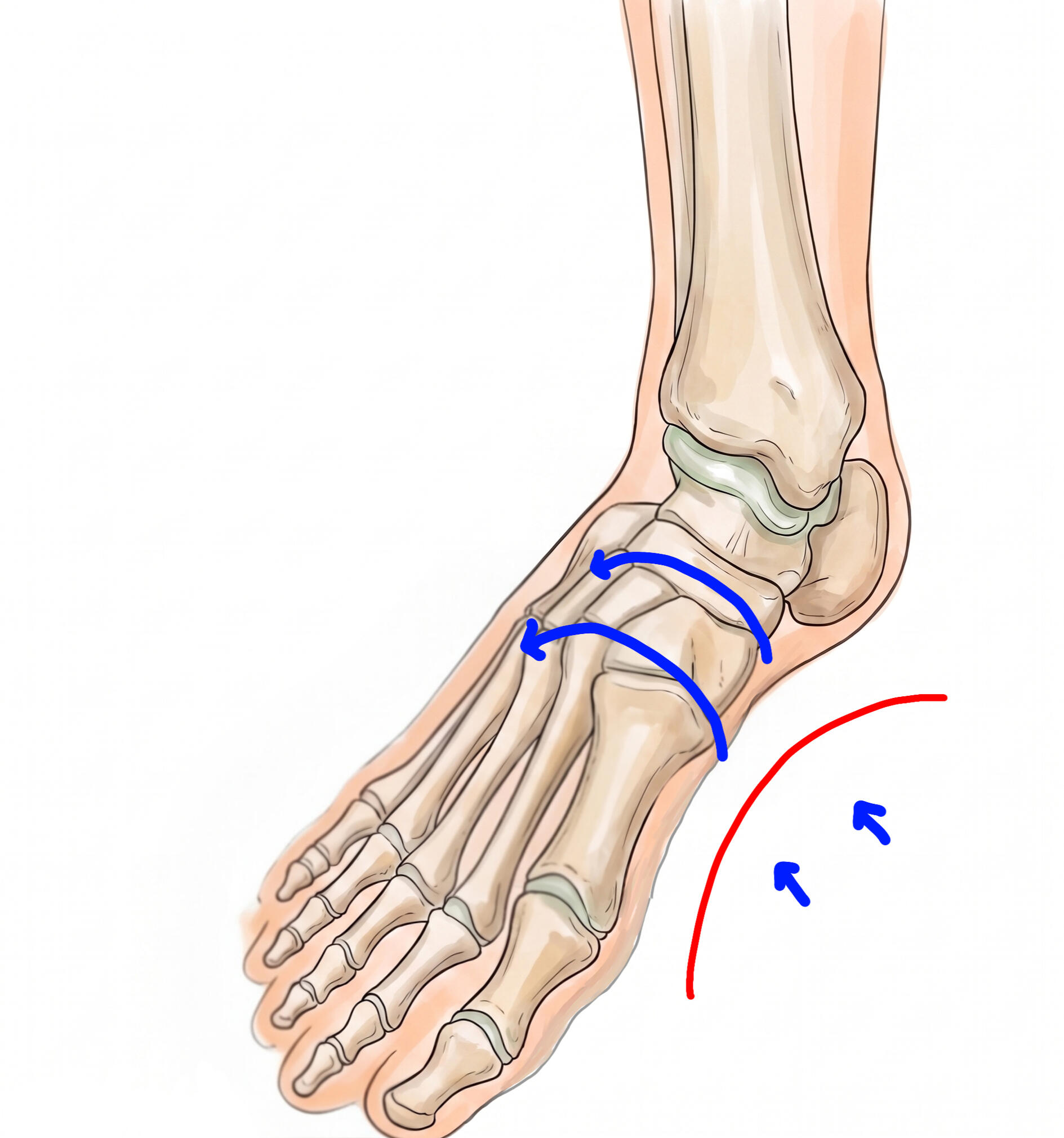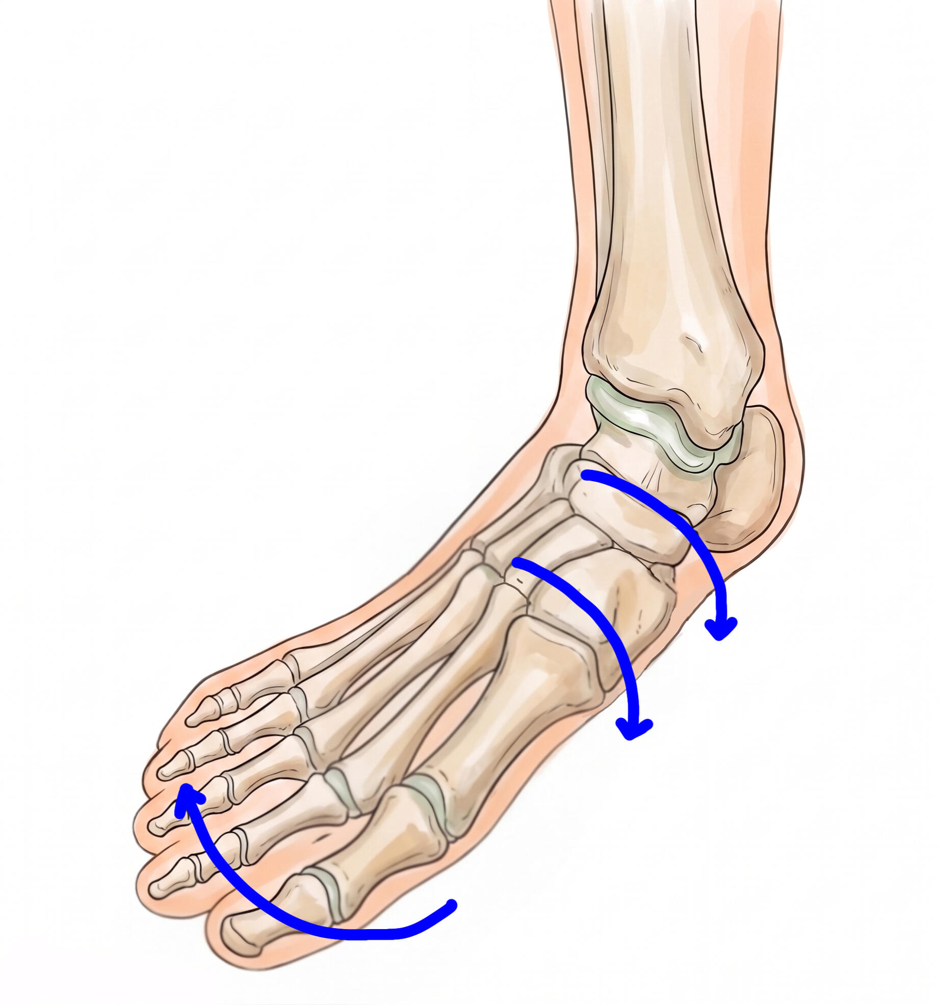평발은 단순히 “발바닥 아치가 낮다”는 미용적 표현으로 끝나는 문제가 아닙니다. 발의 안쪽 세로아치는 몸의 충격을 흡수하고 체중을 분산하는 중요한 구조인데, 이 아치가 무너지면 발만 피곤한 것이 아니라 발목, 무릎, 고관절, 허리까지 연쇄적으로 영향을 받습니다. 의학적으로 평발은 안쪽 아치가 감소하거나 소실된 상태를 말하며, 유연성 평발과 강직성 평발처럼 양상도 나뉩니다. 발의 뼈와 인대, 힘줄, 근육이 함께 아치를 유지하는데, 특히 주상골(navicular)과 입방골(cuboid), 그리고 주변 관절의 정렬은 아치의 안정성에 큰 영향을 줍니다. 일부 해부학 자료에서는 가쪽 기둥 쪽에서 입방골을, 안쪽 기둥에서는 주상골과 설상골-거골-종골의 관계를 아치 안정의 핵심 축으로 설명합니다.진료실에서는 평발을 단순히 “발바닥이 낮다”로 보지 않습니다. 건축물의 아치에도 무게를 받쳐 주는 keystone이 있듯이, 발의 아치도 구조적으로 지지의 핵심이 되는 뼈와 관절이 있습니다. 실제로 평발 환자를 자세히 보면 주상골이 안쪽·아래쪽으로 밀리고, 입방골과 뒤꿈치, 거골의 관계가 틀어지면서 아치 전체가 내려앉은 경우가 많습니다. 이 상태에서는 발바닥만 아픈 것이 아니라, 무릎이 안으로 말리고, 오래 걷거나 운동할수록 다리가 쉽게 지치며, 발목이 불안정해집니다. 또한 아치가 더 무너진 쪽 다리가 더 짧아지며 이는 골반의 불균형으로 이어집니다. 아이들의 경우 걸음걸이가 쉽게 무너지고, 성인은 족저근막염이나 무릎 통증으로 이어지는 경우가 많습니다.